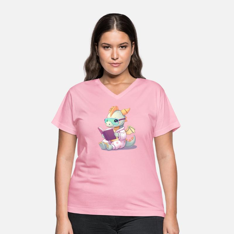 Baby dragon reading a book